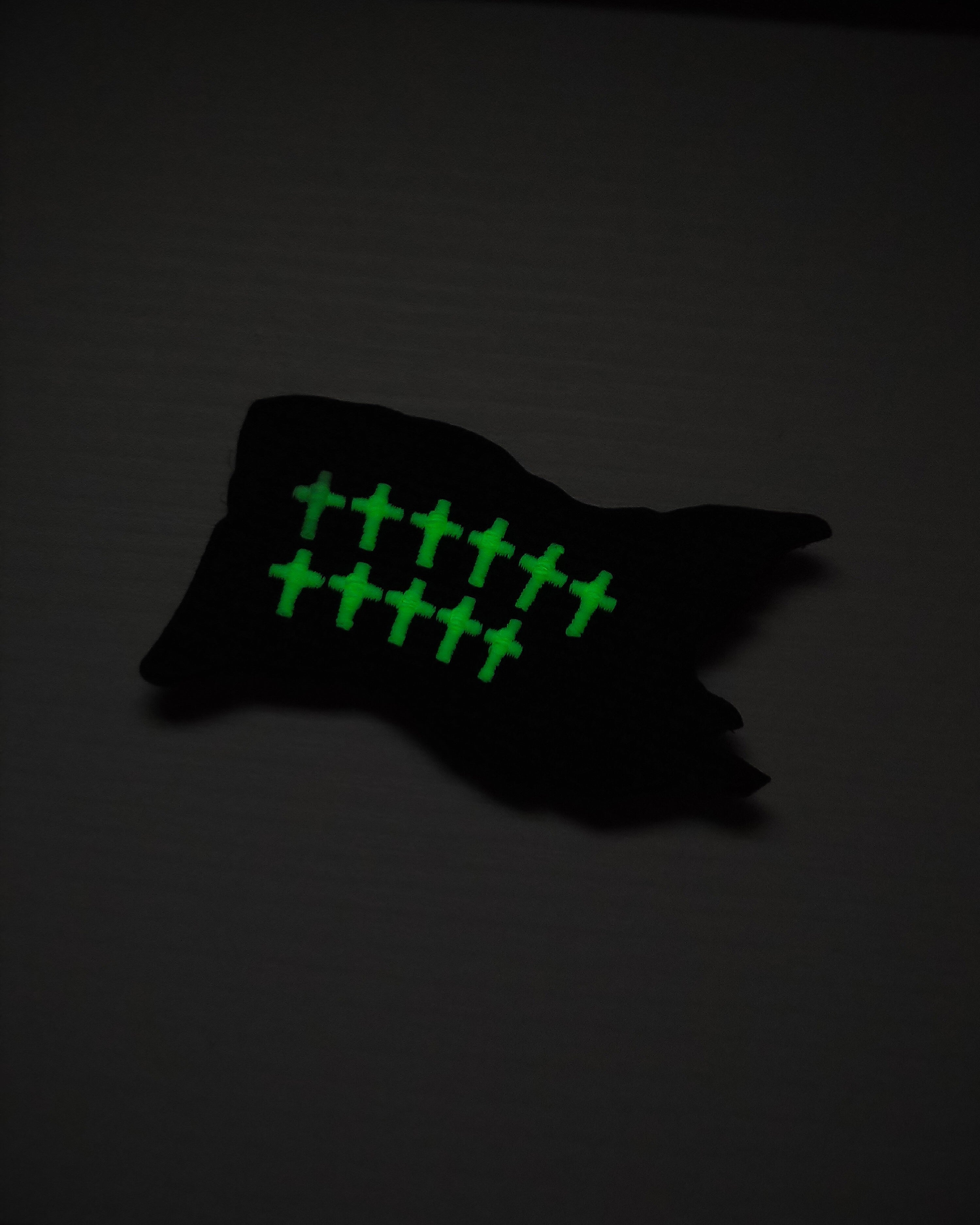 蓄光で刺繍部が光るナイトグロウ仕様のパッチです。