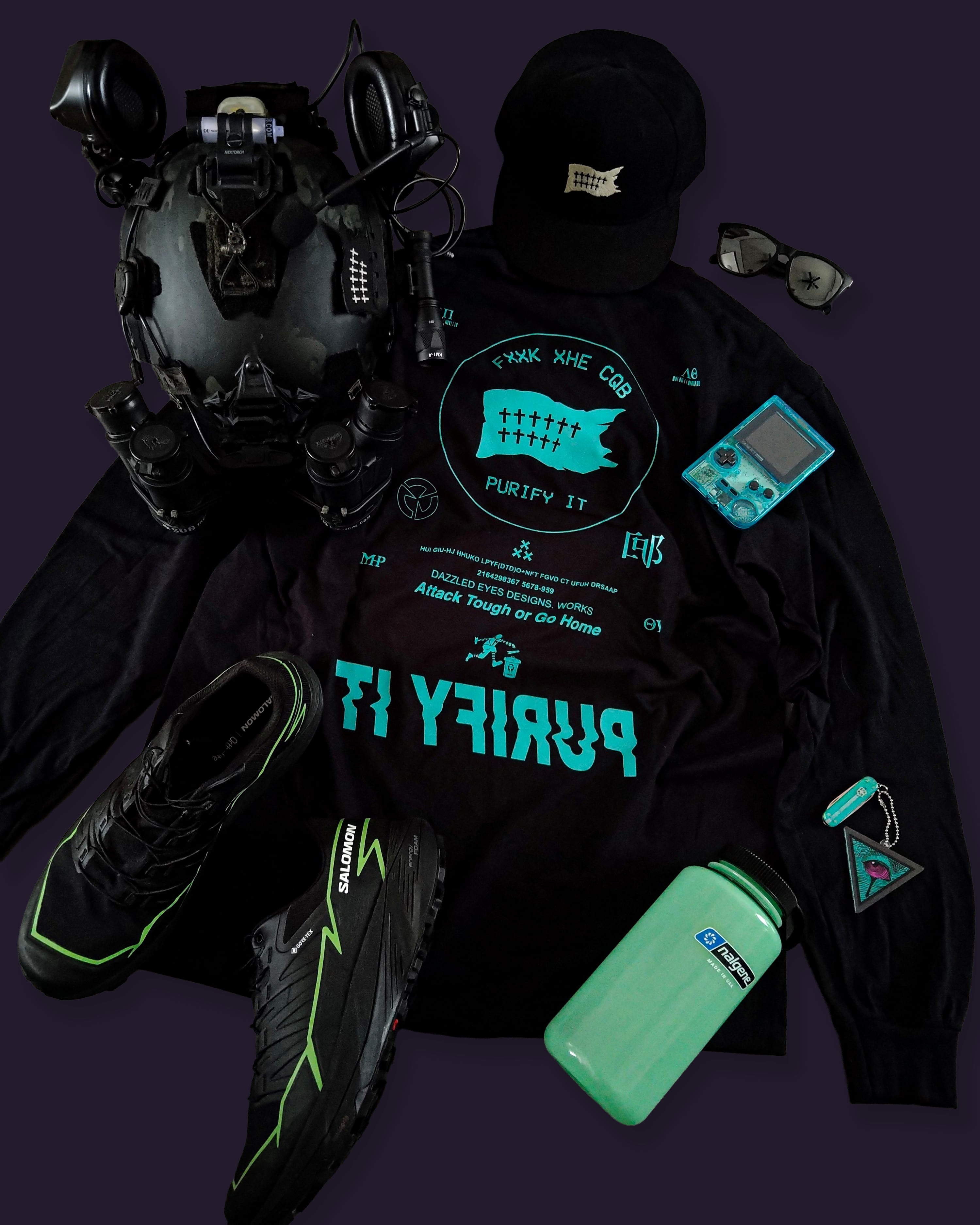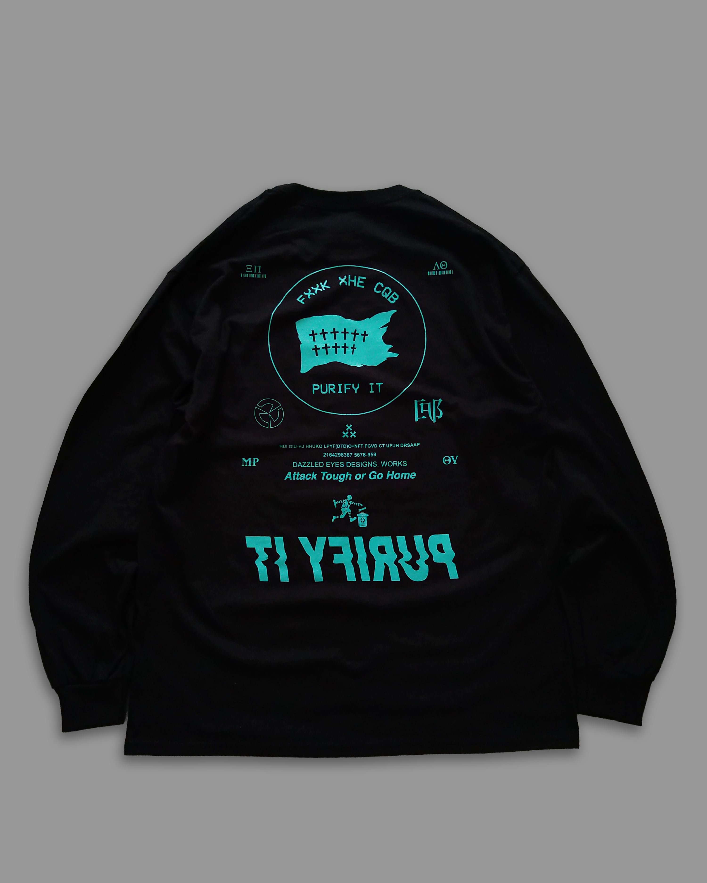 2026ws #21 "FXXK XHE CQB" Long Sleeve T-shirt BLKxMINT