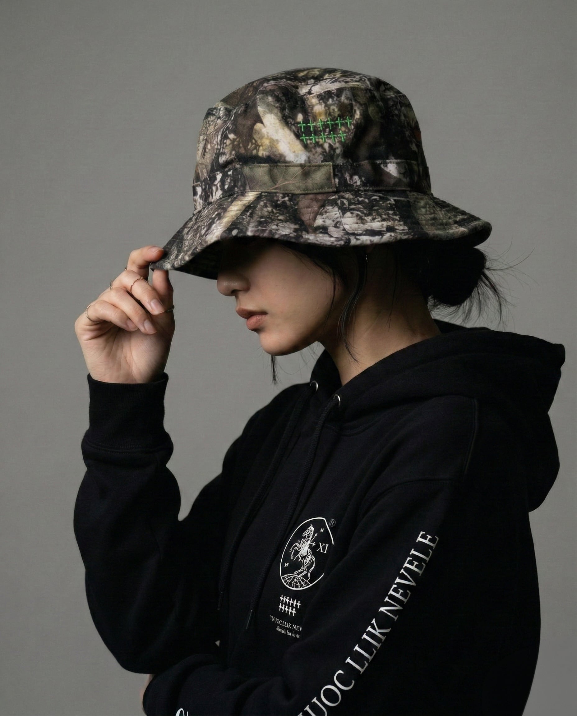 "11kill count"がサイドに刺繍されたバケットハット。